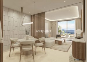 The resort is arranged across four contemporary low-rise buildings, with a mix of 1, 2 and 3-bedroom residences and grand penthouses. Interiors are designed in a fresh Mediterranean style with soft tones, natural textures and generous glazing to maximise light and views. Every home is delivered turn-key, including furniture, appliances and accessories to branded-residence standards.