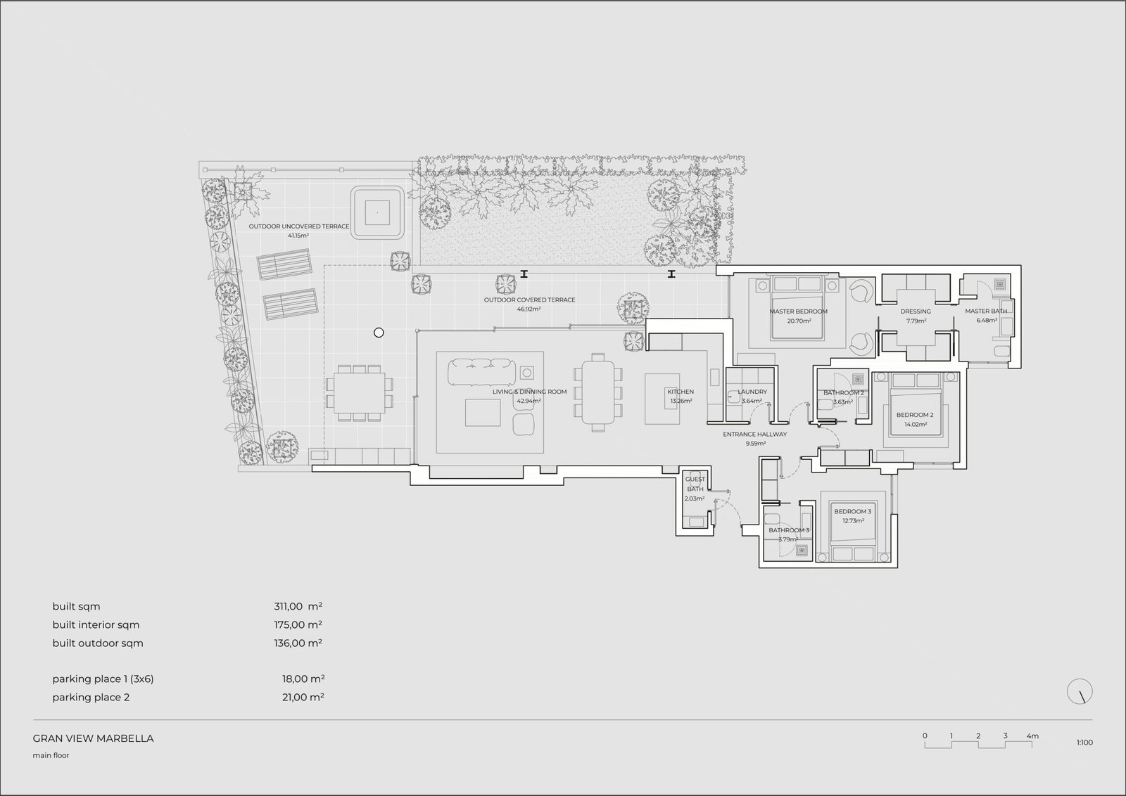 - 311 m² built area with 136 m² wraparound terrace