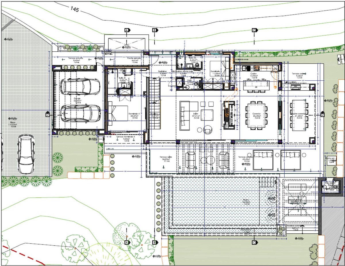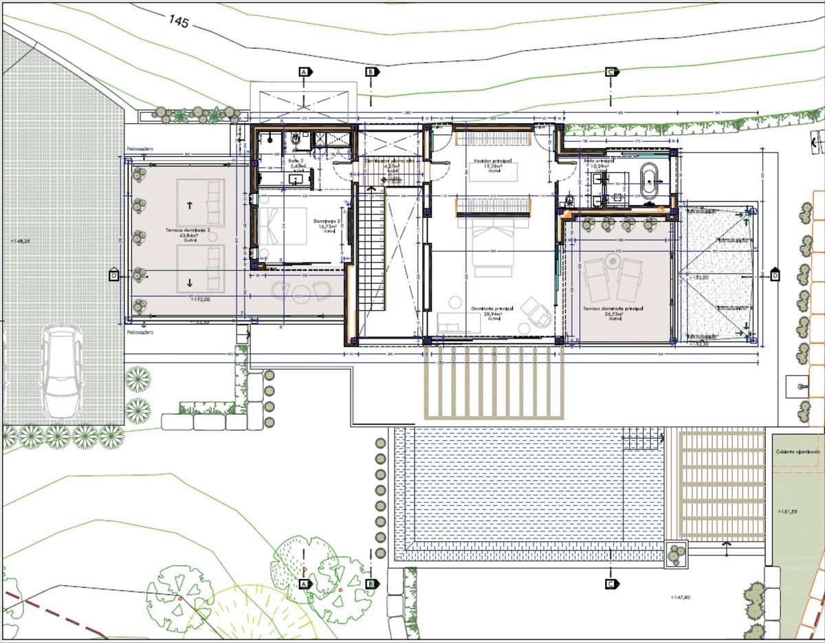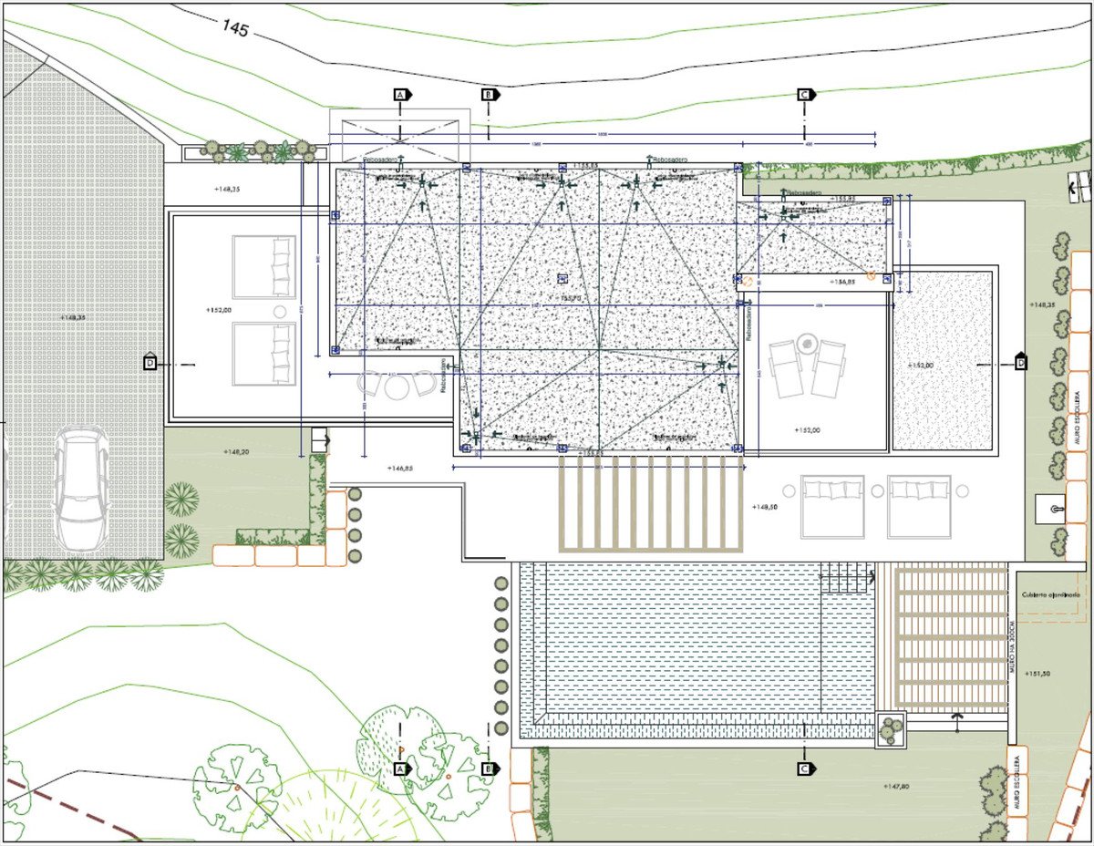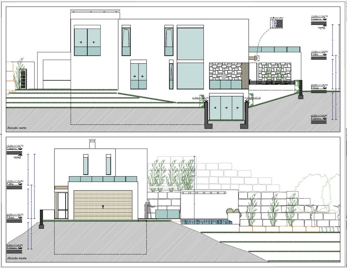 The maximum permitted buildability is 366 m². We can introduce trusted architects and project managers to help design and deliver your villa.
