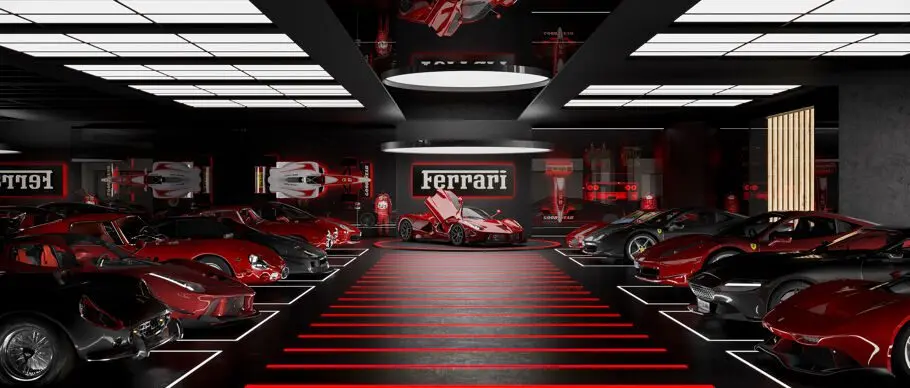 - A garage fit for royalty—with space for 15 cars, including Ferraris, and lounge areas to showcase the collection.